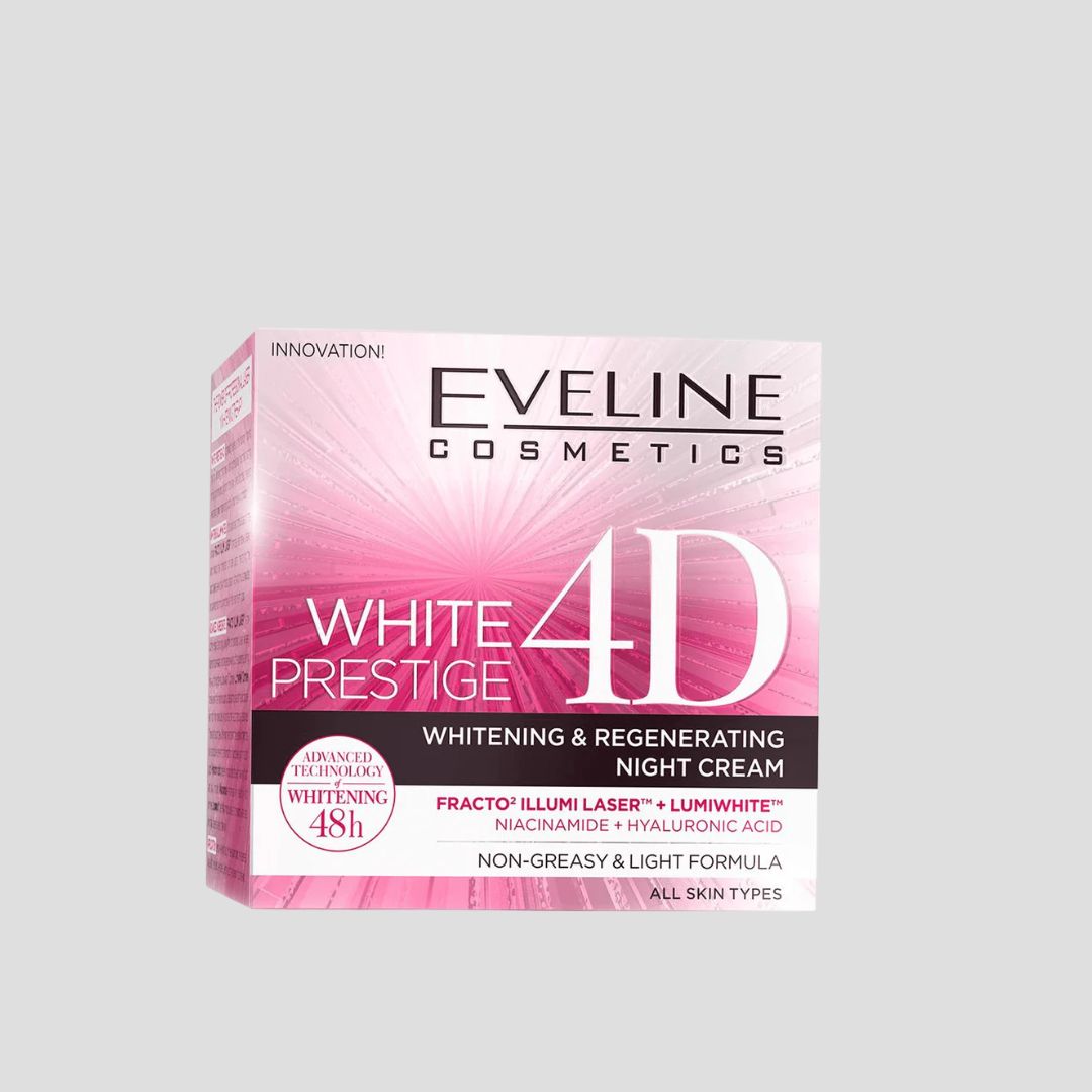 - White Prestige 4D cosmetics series is the innovative treatment that lightens epidermis, evens out skin tone and counteracts excessive pigmentation. Concentrated formula helps to lightens skin during the night. Contains Hyaluronic acid, Niacinamide, Lipomoist.