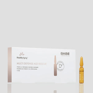 Babé Healthy Aging+ Multi Defense Age Rescue Ampoules 7x2ml is a vitamin-loaded treatment with a powerful anti-aging effect suitable for all skin types, including sensitive. With each application, it regenerates, revitalizes, and rejuvenates the skin, reducing wrinkles and fine lines, firming up, and improving hydration and radiance.