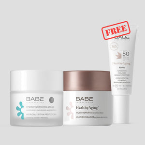 This package offers a complete skincare routine (hydration + nourishment + renewal + advanced sun protection), with a free sunscreen fluid for daily defense.