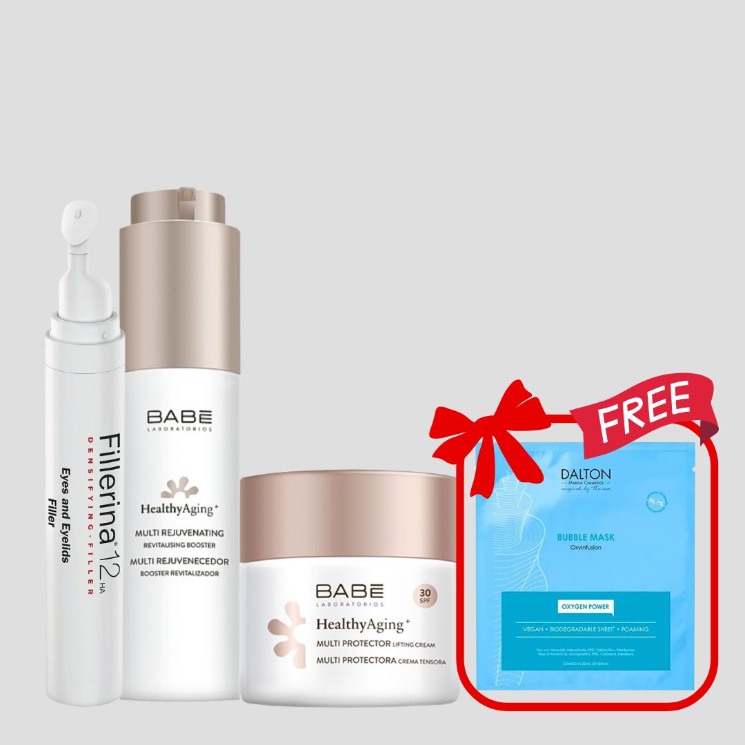 استمتعي بعرض مميز من BABÉ Laboratories لمجموعة Healthy Aging الفاخرة للعناية بالبشرة، والمصممة خصيصًا لمنح بشرتك النضارة والشد والتغذية العميقة.